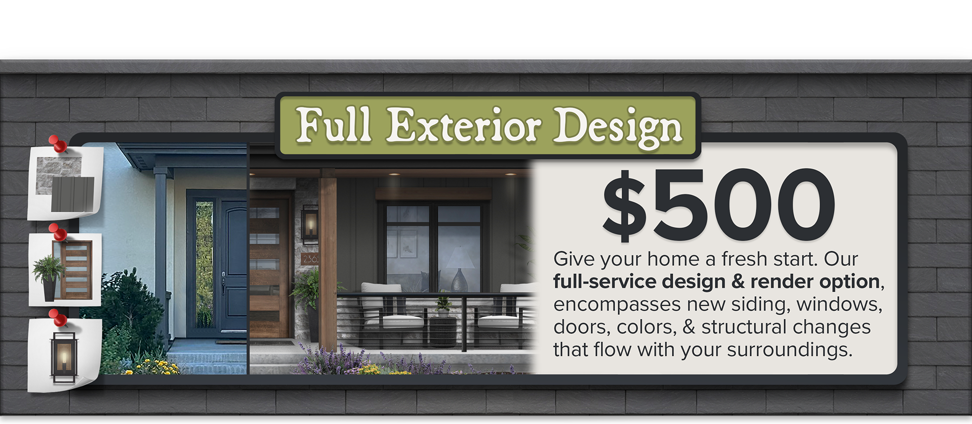 Once you’ve received your introduction email, reply back with a straight-on photo of the side of your home you’d like designed, along with any inspiration images that capture your vision and style.